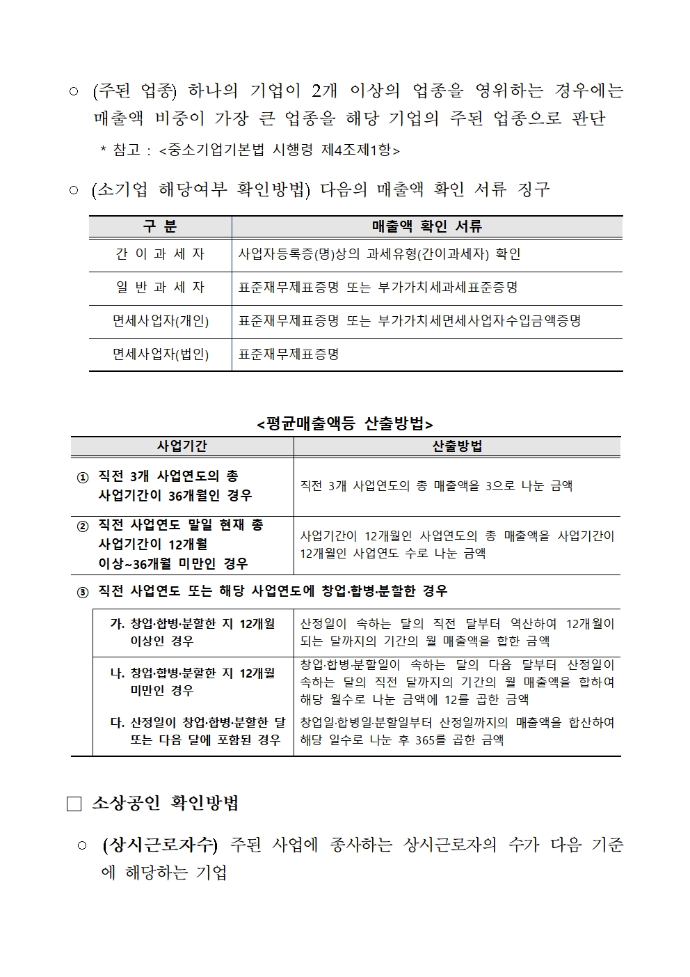소상공인 확인기준