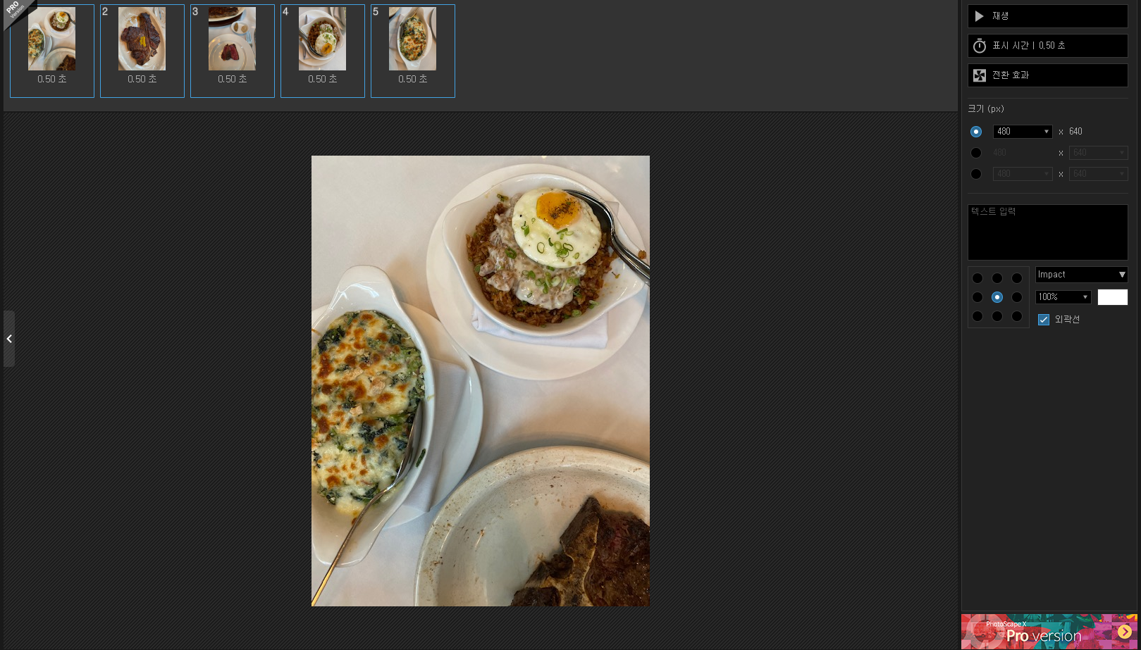 움짤기능을 갖는 GIF 애니메이션도 쉽게 만들 수가 있습니다. 사진을 드래그 한 뒤에 표시시간과 효과등을 입력하고 재생을 시키시면 바로 GIF 애니메이션도 만들 수 있습니다.